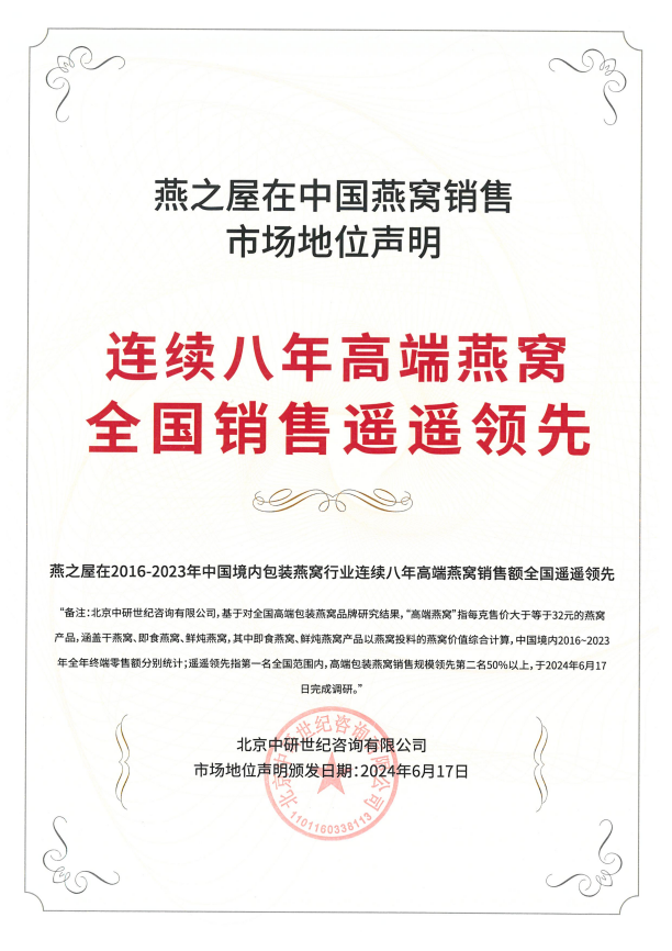 圖:燕之屋連續(xù)八年高端燕窩全國銷售第一、燕之屋連續(xù)八年高端燕窩全國銷售遙遙領(lǐng)先
