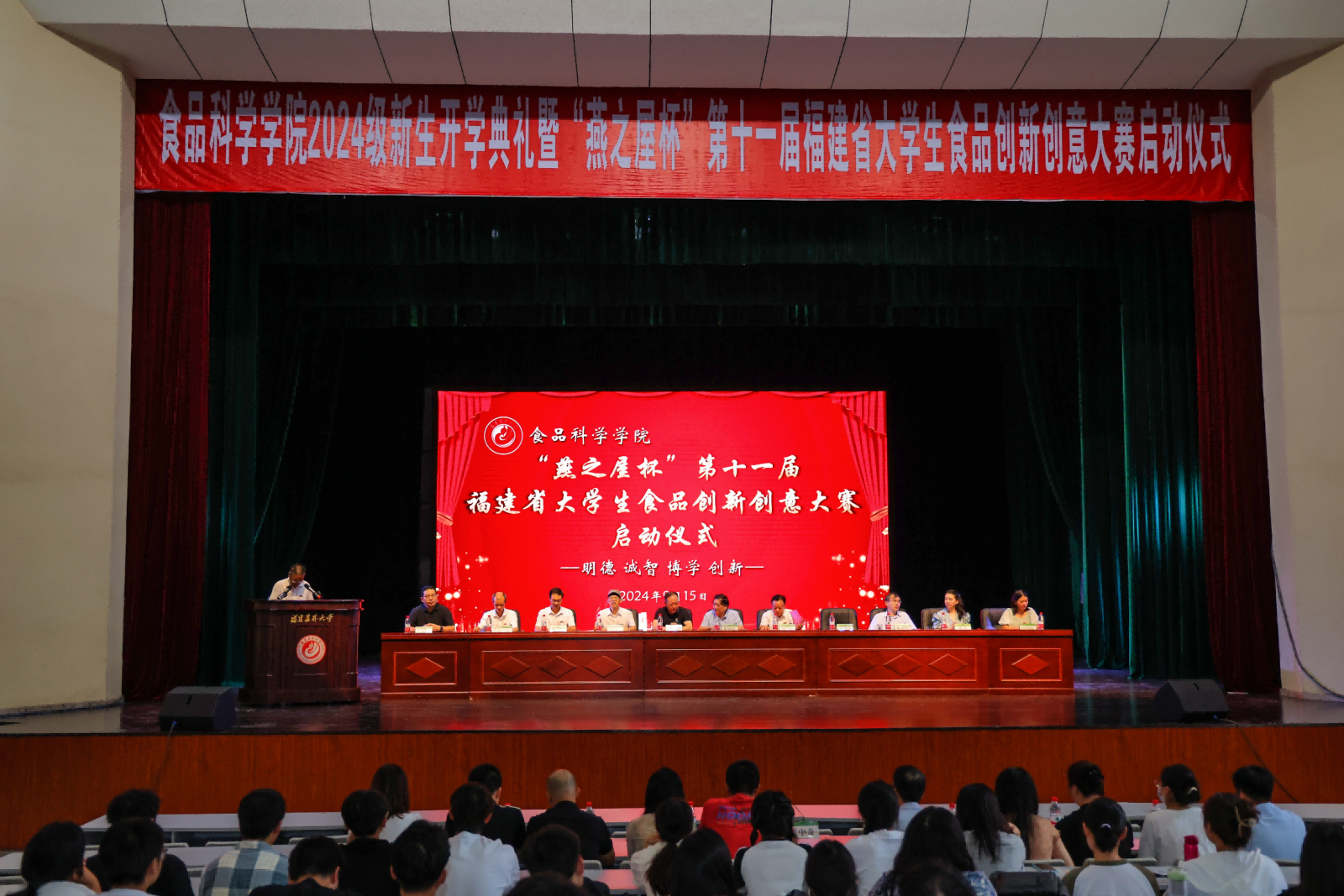 9月15日下午,以“‘燕’領(lǐng)健康潮,營養(yǎng)新‘食’代”為主題的“燕之屋杯”第十一屆福建省大學生食品創(chuàng)新創(chuàng)意大賽啟動儀式在福建農(nóng)林大學舉行。福建省第十一屆政協(xié)副主席陳紹軍教授,福建農(nóng)林大學副校長鄭寶東教授,燕之屋創(chuàng)始人、董事長黃健,福建省食品加工與貯藏工程學會理事長及福建農(nóng)林大學食品科學學院黨政班子、參賽單位教師代表及學生近500人參加了啟動儀式。啟動儀式由食品科學學院黨委書記蘇健涵主持。