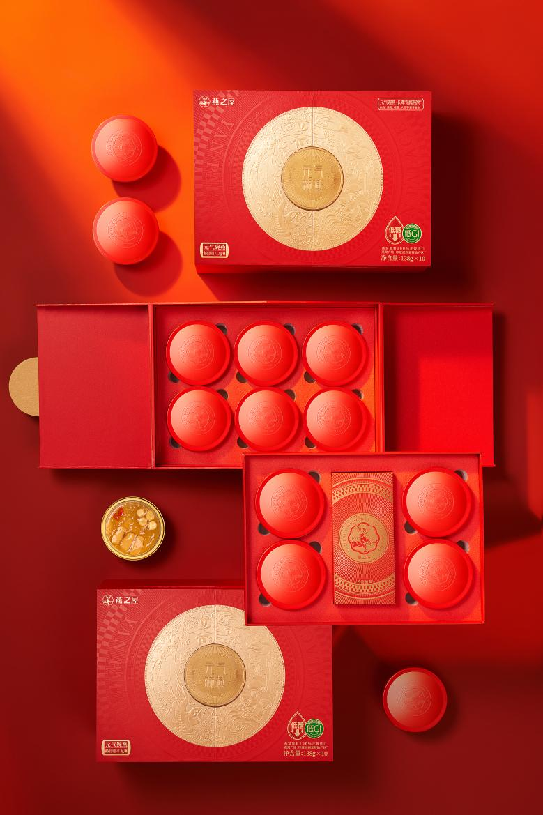 為長(zhǎng)輩挑選滋補(bǔ)好禮,煥新升級(jí)的碗燕·元?dú)饪疃Y盒實(shí)為優(yōu)先之選。中國(guó)紅與黃金色系的精美配搭,凸顯光亮色澤與尊貴質(zhì)感,大方得體,有禮有面。禮盒設(shè)計(jì)圍繞“圓”的概念,以年輪為設(shè)計(jì)意象,象征歲月賦予的智慧,也傳遞著圓滿之意。盒上刻畫金燕反哺動(dòng)人圖景,祥云繁花環(huán)繞其中,蘊(yùn)藏濃厚情意。獨(dú)特的對(duì)稱開盒頗具巧思與創(chuàng)意,內(nèi)里雙層設(shè)計(jì),共承十碗珍饈碗燕·元?dú)饪睿瑵M載濃濃營(yíng)養(yǎng)與深切關(guān)懷,讓滋補(bǔ)觸手可及,關(guān)愛無(wú)處不在。