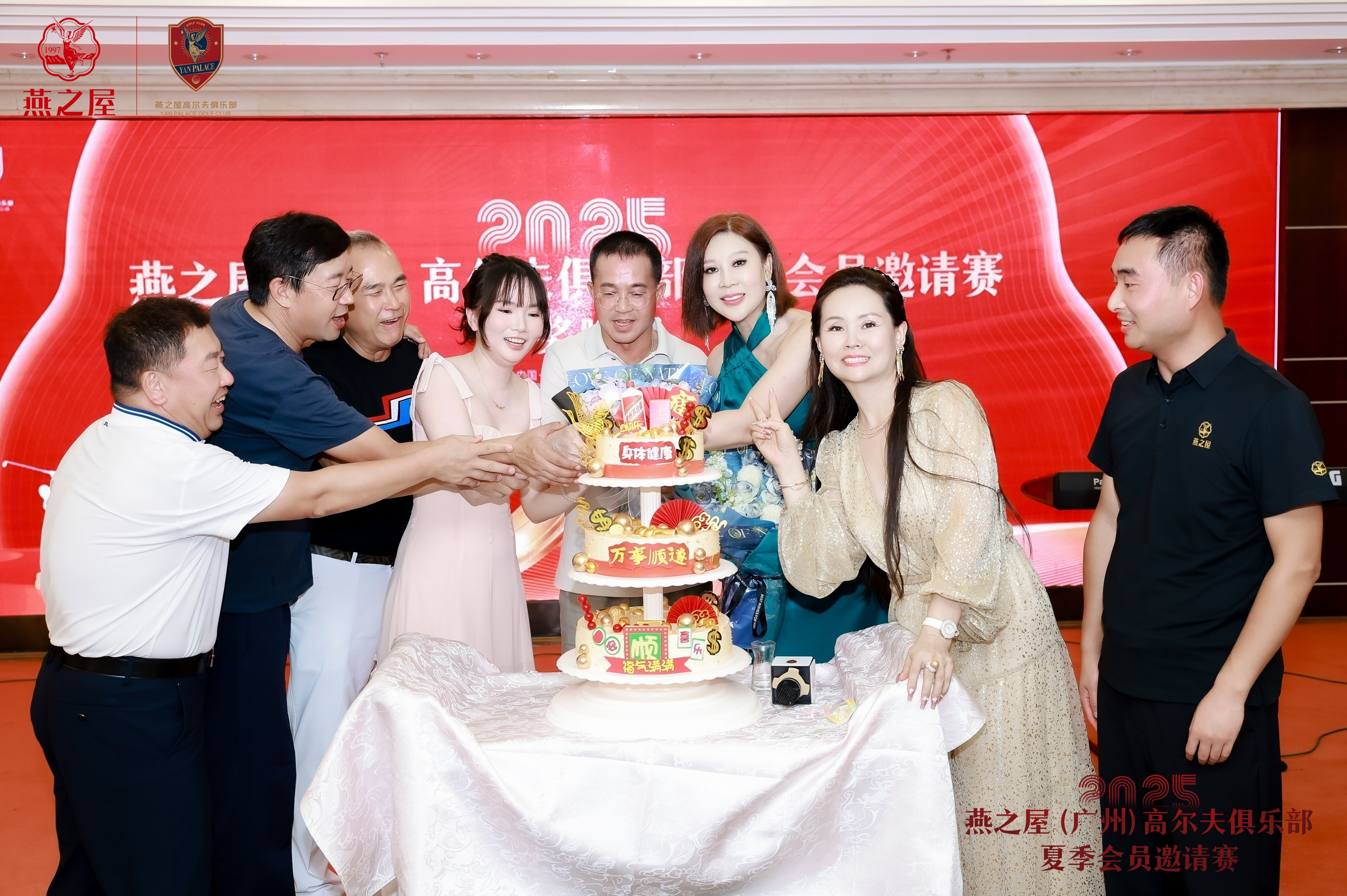 在頒獎環(huán)節(jié),賽事組委會依次為總桿冠、亞、季軍以及凈桿冠軍等各獎項優(yōu)勝者頒發(fā)榮譽獎杯,并贈送燕之屋高端禮盒,祝賀高球精英們的榮耀時刻。燕之屋還為當日壽星燕之屋(廣州)高爾夫俱樂部副會長張相龍慶生,為他送上生日蛋糕和真摯祝福。此外,因為燕之屋(廣州)高爾夫俱樂部創(chuàng)始至尊會員趙曉樰傾情助力每一場賽事,為俱樂部注入更多的健康與活力,晚宴特別設置了隱藏環(huán)節(jié),向其頒發(fā)「卓越奉獻獎」,期待在未來的日子里攜手共進,加持俱樂部美好明天。席間,嘉賓們共品佳肴美酒,暢談高球心得;樂隊演唱與抽獎環(huán)節(jié)輪番上演,增添歡聲笑語。